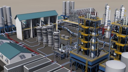 Imagem renderizada de uma planta industrial. Fonte: Autodesk.